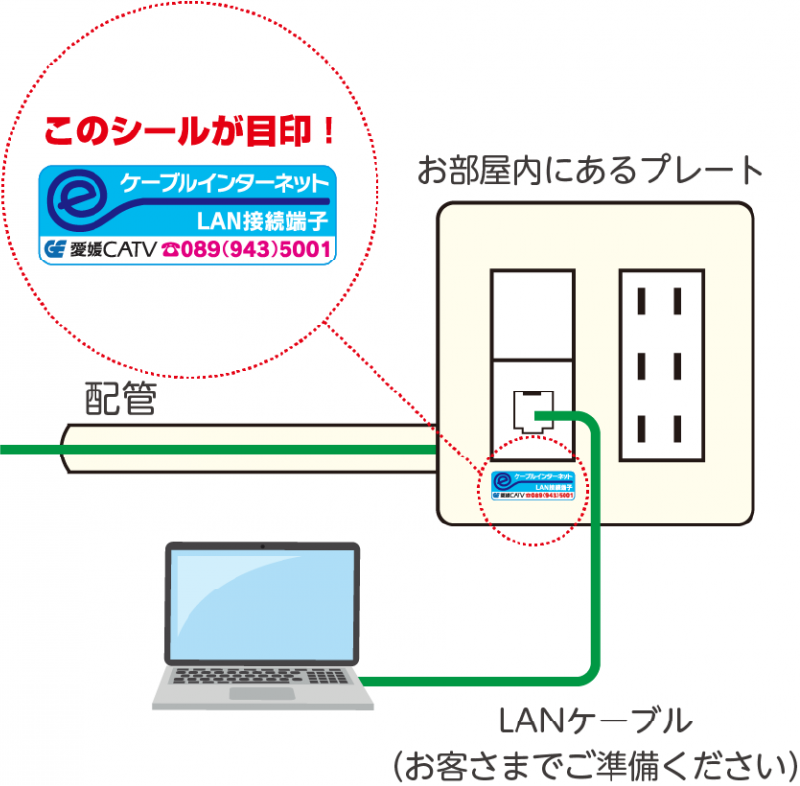 棟内の配管を利用し、各戸へLANケーブルを配線する方式です。