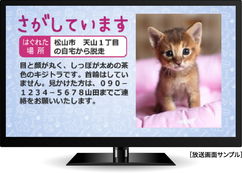 愛媛CATVの「おしらせチャンネル」で 迷子ペット探しの情報を流せます!